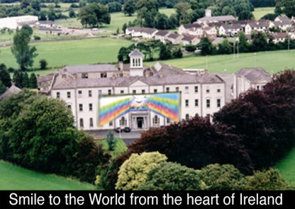 The giant 100foot x 18foot (30m x 5.5m) Smile to the World Banner depicts a rainbow of hope for the world. Over 130,000 children from all counties in Ireland North & South contributed to it's creation - each child drawing a happy picture for people in the world who are suffering.